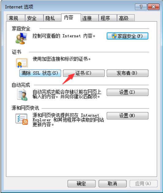 第一步:打开IE浏览器:工具—Internet选项--内容--证书